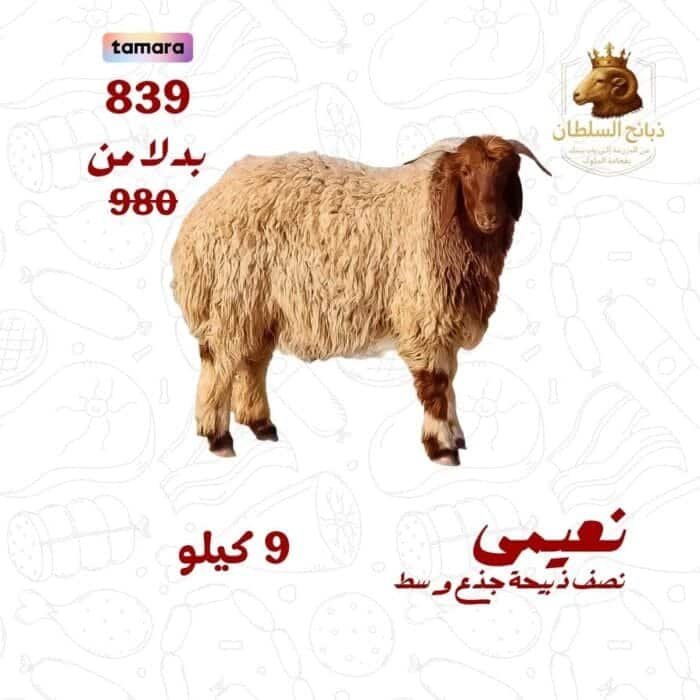 نصف ذبيحة نعيمي جذع وسط – طراوة وجودة لا تضاهى 🔸 نوع الذبيحة: نصف ذبيحة نعيمي جذع وسط 🔸 العمر: 7 أشهر، مما يضمن لحماً طرياً وعالي الجودة 🔸 المصدر: ذبائح منتقاة بعناية من أفضل المزارع، وفق أعلى معايير النظافة والجودة لماذا تختار نصف الذبيحة النعيمي؟ ✅ لحم طازج وممتاز – يتم ذبح وتجهيز الذبيحة يوم الطلب للحفاظ على النكهة والطراوة ✅ مثالية للمناسبات والعزائم – تناسب الطبخ بجميع أشكاله، من الشواء إلى الطبخ التقليدي ✅ تقطيع حسب الطلب – يمكن توفير اللحم كاملاً أو مقطعاً وفق رغبتك (يشمل التقطيع إلى ثلاجة، أو قطع شوربة حسب الاحتياج) ✅ حفظ آمن ونقل مبرد – يتم التوصيل بسيارات مبردة تحافظ على طراوة ونظافة اللحم حتى وصوله إليك التوصيل والخدمة 📍 التوصيل متاح داخل مدينة الرياض – السعر يشمل خدمة التوصيل حتى باب منزلك 📦 التغليف بعناية – يتم تغليف اللحم بطريقة تضمن نظافته وسلامته للحفاظ على جودته 💡 اطلب الآن واستمتع بلحم طازج وعالي الجودة في أسرع وقت! الوزن التقريبي 9/8 كجم نصف ذبيحة يشمل نصف الكبدة نصف الكرشة